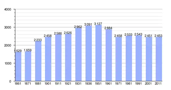 | Variação demográfica do município entre 1861 e 2011[3] |