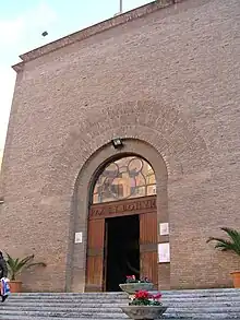 Esta igreja é revestida internamente de tijolos, uma referência à pobreza franciscana. Uma ampla escadaria leva à porta central, flanqueada por outras duas muito menores: na arquitrave está a inscrição "Pax et bonum", encimada por um vitral decorado com uma "Volta de Cristo"[5]. Do lado direito da estrutura se ergue uma torre campanário de planta quadrada que abriga um conjunto de três sinos[6].