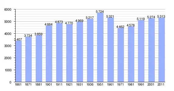 | Variação demográfica do município entre 1861 e 2011[3] |