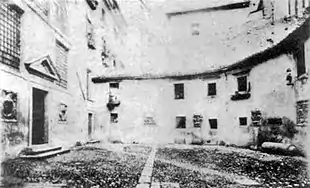 Antes da construção das novas vias, a igreja ficava escondida em pequenas vielas entre a via que é hoje chamada de Via Paola e o Vicolo del'Oro, que corria para o leste a partir de San Giovanni dei Fiorentini. A melhor forma de chegar a ela era através da primeira, ao lado do Palazzo Niccolini, que seguia para o sul e se alargava até desembocar numa área retangular no sentido norte-sul. Uma arcada, neste mesmo sentido, dividia esta área em dois pátios e a entrada da igreja ficava bem no meio do lado oeste do pátio oeste[10]. Atualmente, o espaço ocupado pela antiga igreja está coberto por um grande edifício alaranjado que abriga a Taverna Giulia (2018) na Via Accaioli, um pouco para oeste do ponto de ônibus.