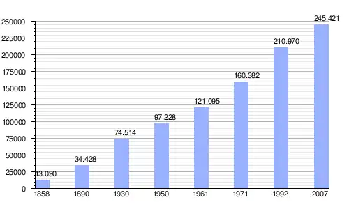 | Gráfico da evolução da população da cidade de Santa Ana entre 1858 e 2007 | |