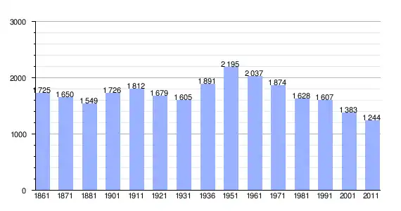 | Variação demográfica do município entre 1861 e 2011[3] |