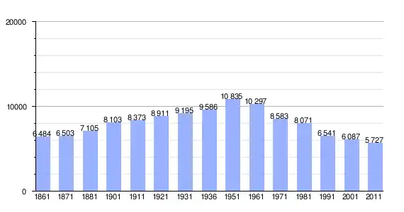 | Variação demográfica do município entre 1861 e 2011[3] |