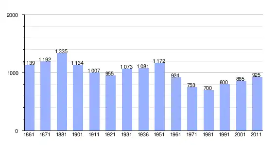 | Variação demográfica do município entre 1861 e 2011[3] |