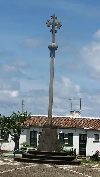 - Os Pauis e o Rossio de Santa Cruz (Praça Fontes Pereira de Melo) são o maior espaço público urbano de qualquer das vilas açorianas, com dois grandiosos tanques descobertos,[10] os pauis, escavados do lado norte e uma vasta praça com um coreto no seu centro (o Rossio) do lado sul. O atual coreto, construído em 1945 em substituição de um que ali existia desde 1886, é apelidado de açucareiro. A praça está ladeada por um notável conjunto de araucárias (da espécie Araucaria heterophylla (Salisb.) Franco) e metrosíderos seculares, datando o plantio de algumas da árvores da década de 1880, então iniciativa do Manuel Simas, futuro Conde de Simas. No lado leste dos pauis existe um fontanário em basalto, ali colocado em Novembro de 1959 e um monumento ao emigrante inaugurado no ano 2000.