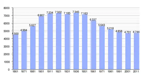 | Variação demográfica do município entre 1861 e 2011[3] |