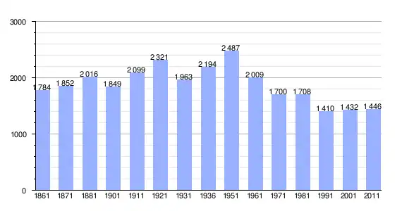 | Variação demográfica do município entre 1861 e 2011[3] |