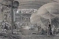 Com poucos recursos à sua disposição, o inventor encheu seu balão sozinho. Foi ajudado durante a noite por cinco amigos dedicados, incluindo seu genro, seis outras pessoas que ele pôde pagar e vinte outras que foram colocadas à sua disposição.[2]