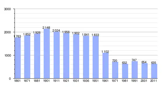 | Variação demográfica do município entre 1861 e 2011[3] |