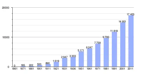 | Variação demográfica do município entre 1861 e 2011[3] |