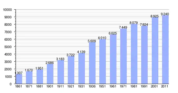 | Variação demográfica do município entre 1861 e 2011[3] |