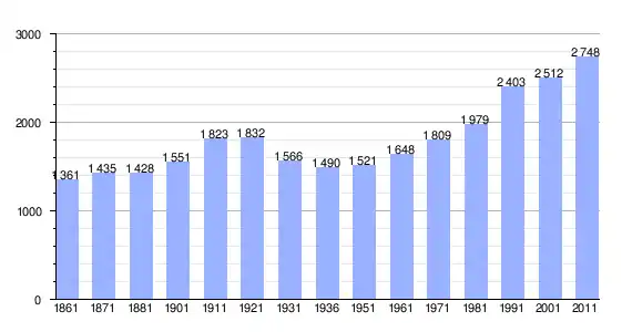 | Variação demográfica do município entre 1861 e 2011[3] |