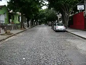 Trecho da rua Congonhas, no bairro Santo Antônio, entre as ruas Leopoldina e Santo Antônio do Monte, possível local de gravação da cena em que o Menino Maluquinho desce a rua com carrinho de rolimã no filme de 1995.[1][2][3]