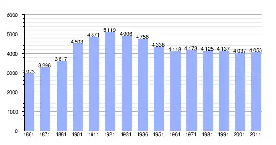 | Variação demográfica do município entre 1861 e 2011[3] |