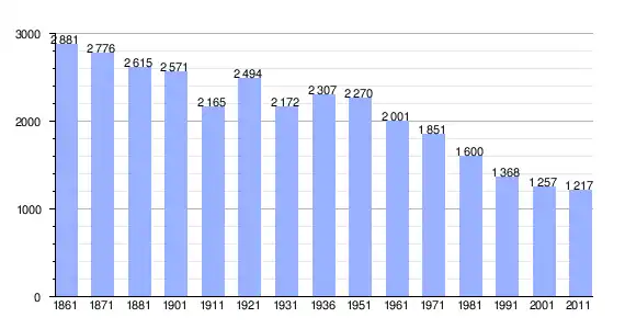 | Variação demográfica do município entre 1861 e 2011[3] |