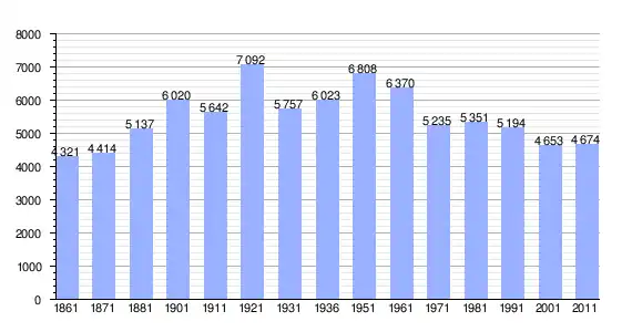 | Variação demográfica do município entre 1861 e 2011[3] |
