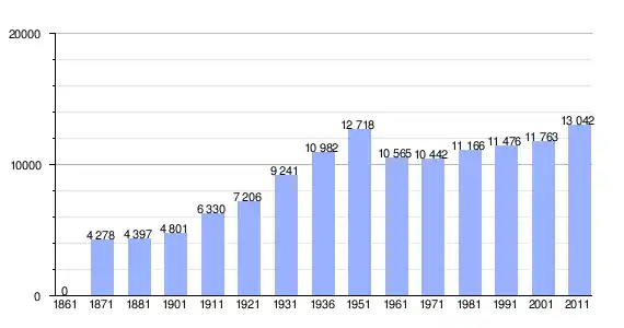 | Variação demográfica do município entre 1861 e 2011[3] |