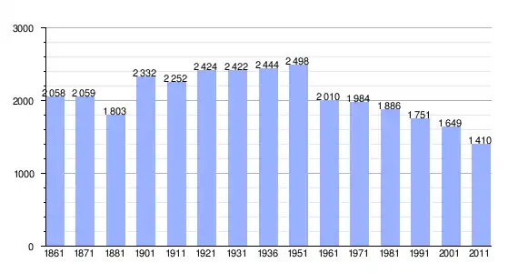 | Variação demográfica do município entre 1861 e 2011[3] |