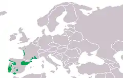Esta espécie ocorre na Península Ibérica e parte noroeste de França, em florestas de caducifólias e em terrenos arenosos.[1]