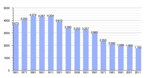 | Variação demográfica do município entre 1861 e 2011[3] |