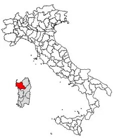Faz fronteira a norte com o Mar Mediterrâneo, a este com o Mar Tirreno, e a sul com a província de Nuoro e com a província de Oristano.[1][2][3]