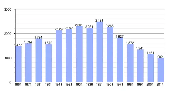 | Variação demográfica do município entre 1861 e 2011[3] |