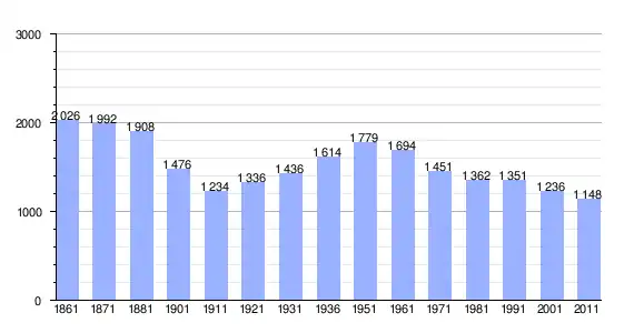 | Variação demográfica do município entre 1861 e 2011[3] |