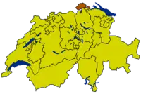O cantão de Schaffhausen está dividido em três zonas, das quais a maior é a sua capital Schaffhausen e as outras duas são enclaves, um na Alemanha e outro no cantão de Zurique.