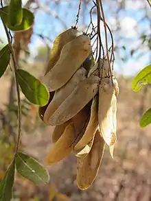 - Obtenção e beneficiamento de sementes: os frutos devem ser colhidos diretamente da árvore quando iniciarem a queda espontânea e podem ser semeados diretamente, sem necessidade de extração da semente. Há cerca de 6600 unidades por quilo de sementes. Viabilidade em armazenamento inferior a 90 dias.[9] No Cerrado, as sementes estão adequadas para a coleta entre Outubro e Novembro.[13]