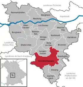 | Localização de Schrobenhausen no distrito de Neuburg-Schrobenhausen | |