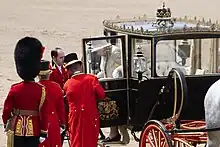 O treinador escocês do estado é uma carruagem fechada, quatro horse-drawn usada pela família real britânica.