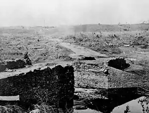 ![]() Ruínas da ponte de pedra sobre o Riacho Bull Run. | |||