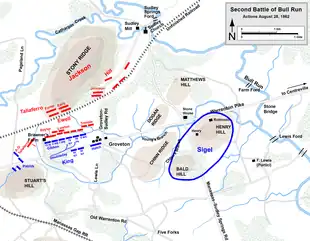 Como os homens de Longstreet estavam em suas posições, o general Lee ordenou a ofensiva contra a esquerda dos legalistas num ataque combinado com Jackson. Longstreet, contudo, viu as divisões de Reynolds e Schenck se espalhando ao sul da Warrenton Turnpike e voltou com metade da sua linha.