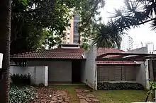 Compacta e econômica, a casa de 1949 expressa o senso de interpenetração social do arquiteto. Os espaços são privados e pequenos, com uma sala de estar integrada a jardim e estúdio em plano elevado. A cobertura é de planos inclinados assimétricos que convergem numa calha única de captação de águas pluviais, solução usada também em outros projetos residenciais do arquiteto.[7]