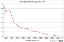 Em 2017, houve 10 acidentes fatais com voos de linha aérea, resultando em 44 fatalidades de ocupantes e 35 fatalidades de pessoas no solo: o ano mais seguro de todos os tempos para a aviação comercial, tanto pelo número de acidentes fatais quanto por mortes.[5] Em 2018, os acidentes fatais por milhão de voos diminuíram 16 vezes desde 1970, de 6,35 para 0,39, e as mortes por trilhão de passageiros-quilômetro (RPK) diminuíram 54 vezes, de 3.218 para 59.[6]