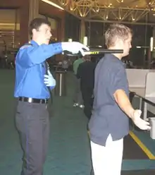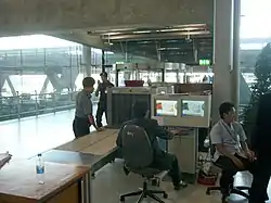 Um desenvolvimento recente é o uso controverso de raios-x de retroespalhamento para detectar armas e explosivos escondidos nos passageiros. Esses dispositivos, que usam o efeito Compton, exigem que o passageiro fique próximo a um painel plano e produzam uma imagem de alta resolução.[11] Uma tecnologia lançada em Israel no início de 2008 permite que os passageiros passem pelos detectores de metal sem tirar os sapatos, um processo necessário, pois os detectores de portão de entrada não são confiáveis para detectar metal nos sapatos ou nas extremidades inferiores do corpo. Como alternativa, os passageiros entram totalmente calçados em um dispositivo que faz a varredura em menos de 1,2 segundos em busca de objetos tão pequenos quanto uma lâmina de barbear.[12] Em alguns países, pessoas especialmente treinadas podem conversar com os passageiros para detectar ameaças, em vez de depender apenas do equipamento para encontrá-las.