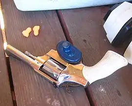Quando uma arma de fogo é disparada, ela emite um ruído muito alto, normalmente próximo aos ouvidos do operador. Isso pode causar danos auditivos temporários ou permanentes, como zumbido. A proteção auditiva, como protetores auriculares, ou ambos, pode reduzir o risco de danos à audição.[7] Alguns protetores de ouvido ou fones de ouvido feitos para filmagem e situações semelhantes de ruído usam controle de ruído ativo. As armas de fogo também podem ter silenciadores que reduzem a intensidade do som do cano.