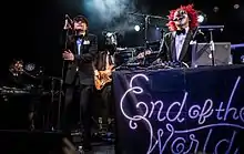 ![]() Sekai no Owari Da esquerda para direita: Fukase, Saori, Nakajin e DJ Love. | |