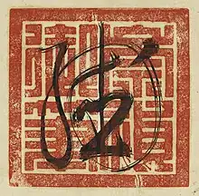 - Zhuwen (em chinês: 朱文; pinyin: zhūwén; Pronúncia japonesa: shubun; literalmente: "caracteres vermelhos") – imprimem os caracteres chineses em tinta vermelha, às vezes chamados de selos yang.