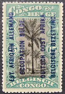 Entre estas duas datas, foram postos a circular selos do Congo Belga, sobrecarregados com a inscrição bilingue (francesa e flamenga) "EST AFRICAIN ALLEMAND OCCUPATION BELGE / DUITSCH OOST AFRIKA BELGISCHE BEZETTING"[2].