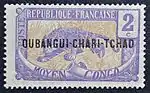 Em 1906 foi fundido com o território de Ubangui-Chari (atual República Centrafricana) e, quatro anos depois, foi uma das quatro colónias (juntamente com o Ubangui-Chari, o Gabão e o Médio Congo) que constituíram a federação da África Equatorial Francesa[1]. Os primeiros selos emitidos para o território do Chade eram selos do Médio Congo com a sobrecarga "Oubangui-Chari-Tchad". Numa série constituída inicialmente por 17 valores, sete deles representavam o desenho de um leopardo (1c, 2c, 4c, 5c, 10c, 15c, 20c), outros sete representavam a figura de uma mulher nativa (25c, 30c, 35c, 40c, 45c, 50c, 75c) e três representavam coqueiros (1 fr, 2 fr e 5 fr)[2].
