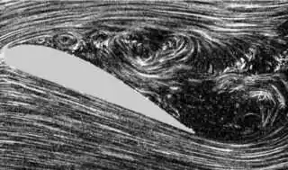 Separação de um fluxo de ar em uma asa em alto ângulo de ataque.