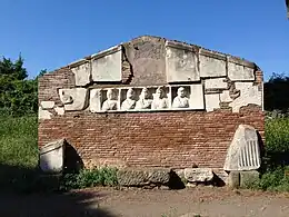 Da época augustana (c. 30 a.C.), o original está preservado no Museu Nacional Romano e o que se vê hoje é uma cópia em cimento. Na parte mais alta da parede, Canina colocou uma inscrição de um período posterior que indicava o nome do defunto, um certo Hilário Fusco, destruída em algum momento entre 1978 e 1998[3].