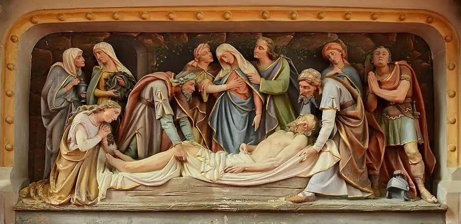 O Sepultamento de Cristo tem sido um tema popular na arte cristã, principalmente na Europa Ocidental depois do século X. Ele aparece nos ciclos da Vida de Cristo, logo depois da Deposição da Cruz ou da Lamentação de Cristo. Desde o Renascimento, ele tem sido geralmente combinado ou fundido neles.[23] Entre os exemplos mais notáveis estão: