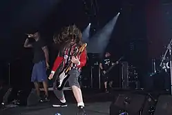 ![]() Sepultura (banda) À esquerda, Paulo Jr. (baixista), na bateria Eloy Casagrande (bateria), ao centro, na frente de Eloy, Derrick Green (vocais) e à direita, Andreas Kisser (guitarra). | |