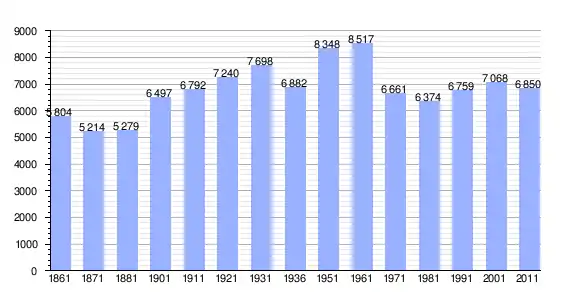 | Variação demográfica do município entre 1861 e 2011[3] |