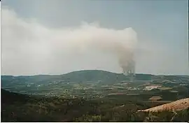 No sopé da serra está a aldeia de Rebordãos e no topo o Santuário de Nossa Senhora da Serra.