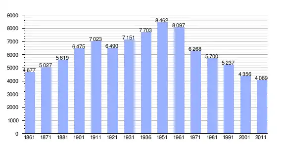 | Variação demográfica do município entre 1861 e 2011[3] |