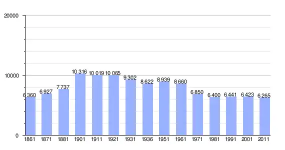 | Variação demográfica do município entre 1861 e 2011[3] |