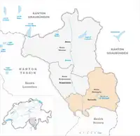 Acquarossa, Biasca, Bodio, Blenio, Hinterrhein (GR), Mesocco (GR), Rossa (GR), Sobrio |